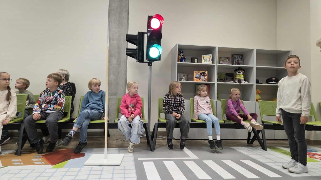 Šiandien 1b klasė vyko į pirmąją savo edukacinę išvyką. Vilniaus apskrities vyriausiąjį policijos komisariatą, kur dalyvavo saugaus eismo pamokoje.